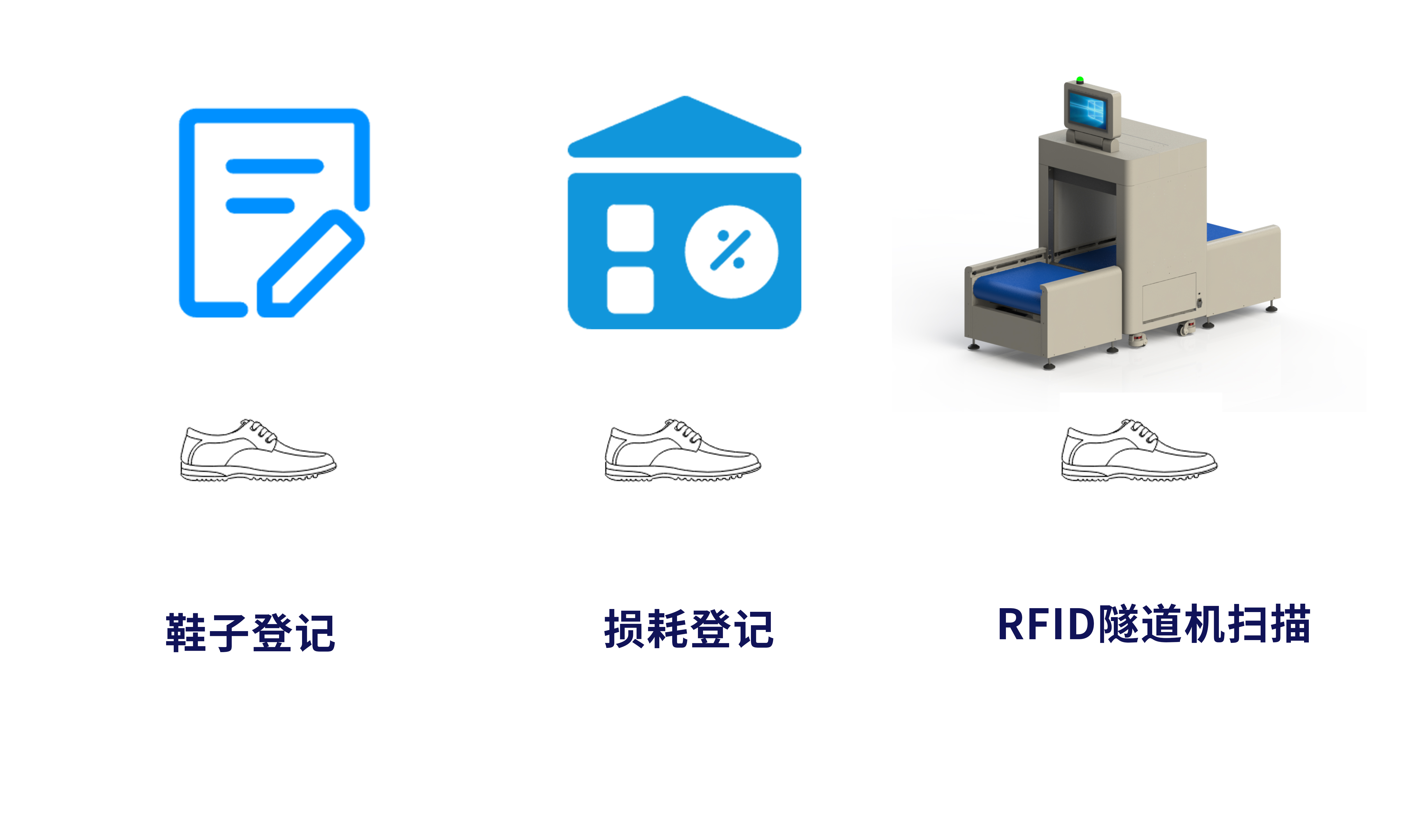 当鞋子完成上色工序,随即进入质量检测与信息更新的关键节点 —— 再次通过 RFID 隧道机。在鞋子缓缓穿过隧道机的过程中,机内先进的扫描设备迅速读取鞋子所绑定的 RFID 标签信息。此时,系统不仅会记录下鞋子上色后的实际外观、色泽等详细状态信息,还会依据预设的标准,精准检测鞋子上色环节可能出现的诸如掉色、色彩不均等损耗情况,并将这些损耗数据实时上传至管理系统。完成信息记录与损耗评估后,系统自动将鞋子的状态由 “上色中” 更新为 “上色完成”,为后续的仓储与出库流程提供最新且准确的数据支撑 。
