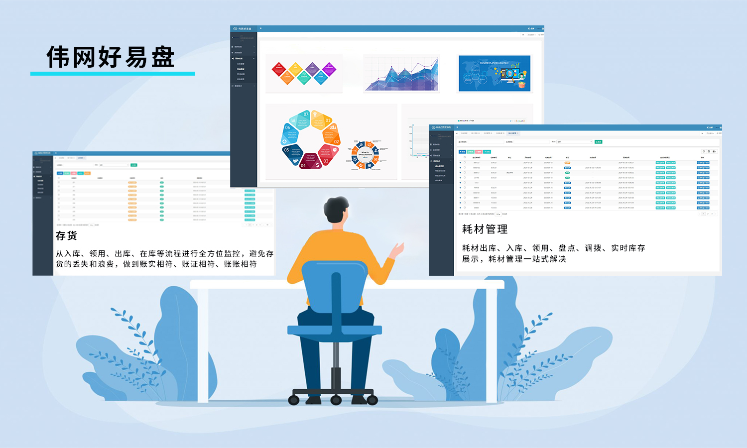 伟网好易盘提供面向中小型企业的生产原料和产品仓库提供信息集成一体化方案,对物料的入库和出库等活动进行电子化跟踪,实现过程信息的全面记录,从而提升库位透明度、提升出入库效率、减少物料呆滞,从而提升企业库存管理水平。